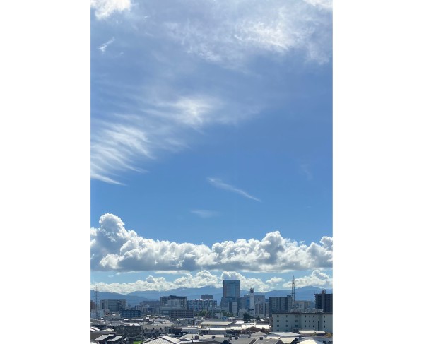 こんにちは。東京や名古屋の昼はまだまだ暑いと聞きますが、金沢は過ごしやすいです。金沢駅の方を見ると雲の上に雲がかかっていて、面白い空でした。