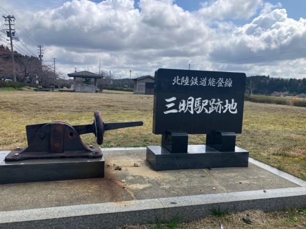 北陸鉄道能登線。どうやら羽咋駅からこちら三明駅までつながっていたのですね。確かに国道を走っていると傍らに路線の名残を感じる風景が広がっています。ちなみに、昼食については後日のタロスケメシでご紹介しようと思います。