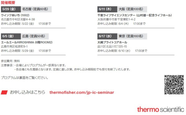 個人的には、「目的イオンの検出ノウハウ」に興味がありますが・・・どちらで開催されるのかと見ますと~